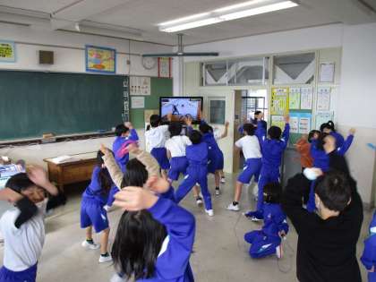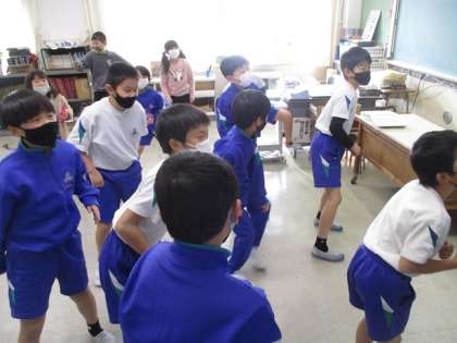 外で運動を行う機会が減っている時期ですが、毎週火曜日の体力つくりタイムには、元気にダンスや縄跳びで体を動かしています。