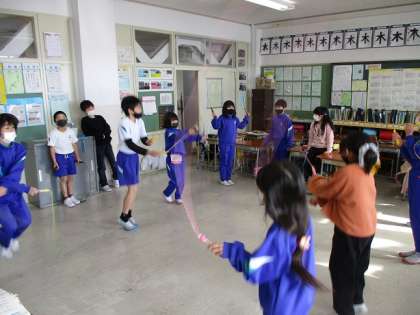 また、3年生では今大縄が大人気です。休み時間を利用してみんなで練習しています。先日ついに、3分間で150回を超えました。まだまだ記録更新を目指してがんばっていきます。