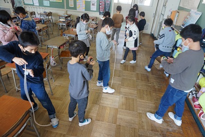 生活科では、こま遊びに挑戦しています。上手にこまを回せるように、休み時間も練習をしています。