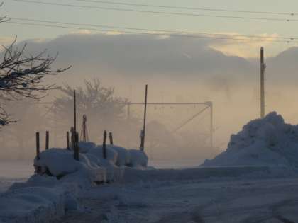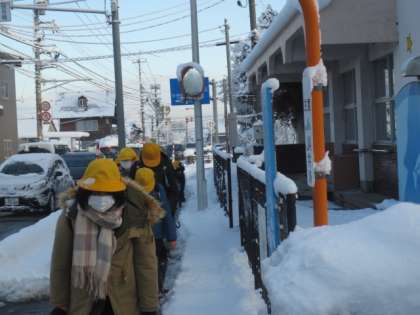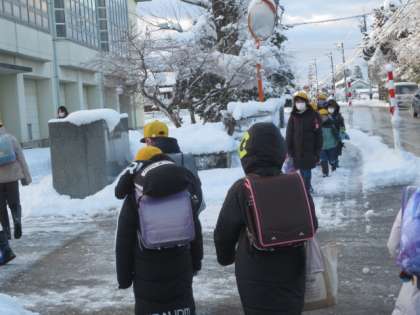 2月7日(月)、雪と寒さでグラウンドに、もやがかかりましたが、子供たちは元気に登校しています。