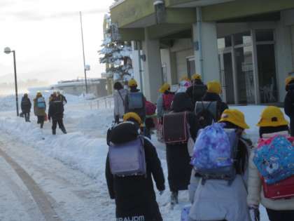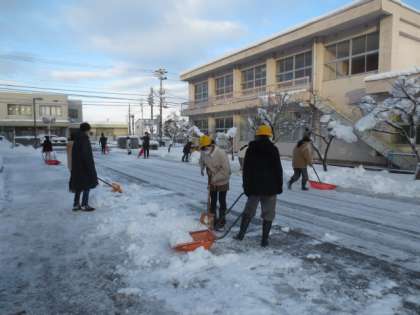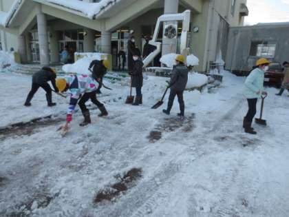 朝早くから、教職員が子供たちが通るところを除雪しています。6年生も、登校したらすぐに玄関前等の除雪をがんばりました。
