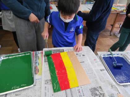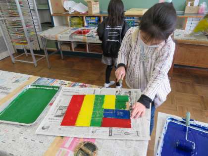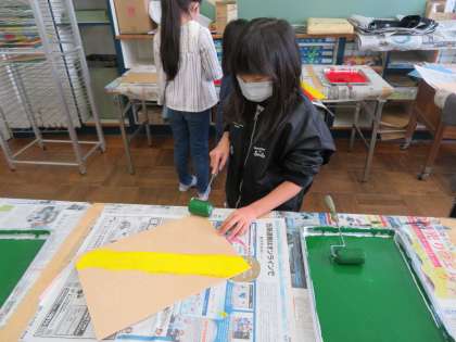 ローラーで色を付けている様子です。