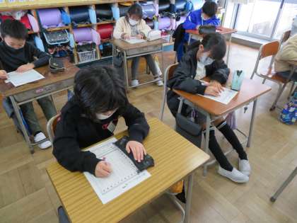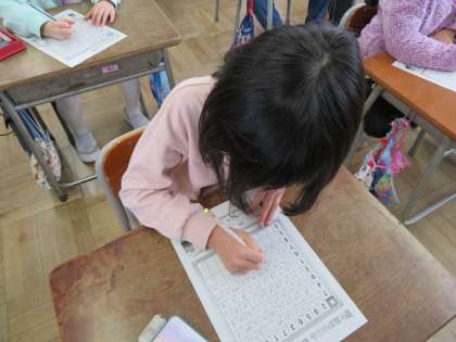 2年生は、算数の学習の始めに九九テストを行っています。今日は100マス計算にチャレンジしました。みんな真剣に取り組んでいました。