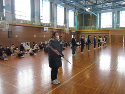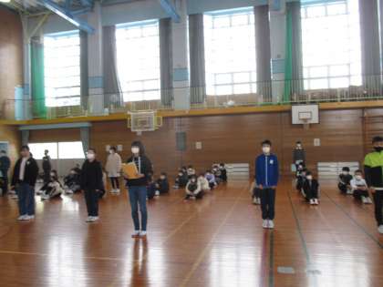2月25日の児童会引き継ぎ式に向けて、6年生で練習を行いました。