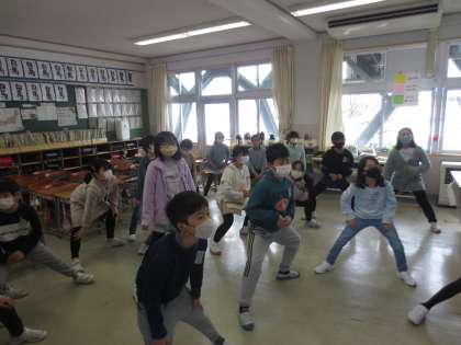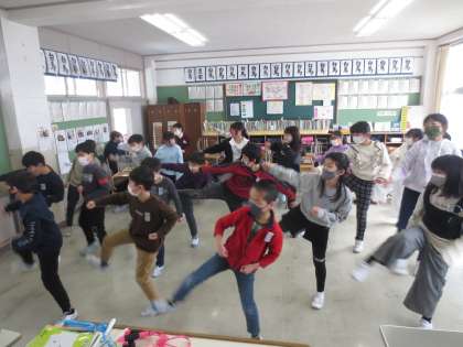 運動が大好きな4年生。体力つくりタイムではダンスに取り組んでいます。1組も2組もうごきがキレキレです。