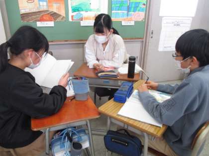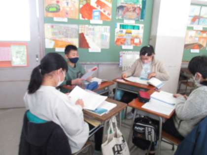 海の命という物語を国語の授業で学習しています。登場人物の生き方についてまとめをし、それに対する自分の思いをもちました。
