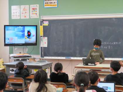 今日は、作ったスライドをみんなに発表しました。友達の小さい頃の様子やできるようになったことを知ることができ、とても嬉しそうでした。スライドの作り方も覚え、アニメーションを付けたり背景を変えたりして、自分オリジナルの素晴らしいスライドが出来上がりました。