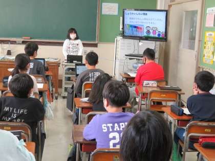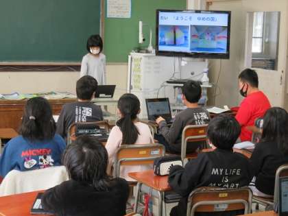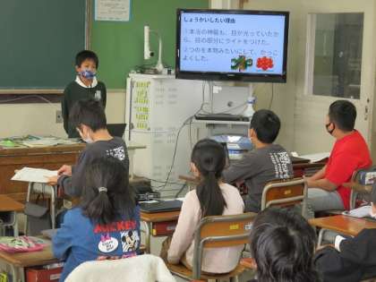 今日は、作ったスライドを見せながら、お気に入りの作品発表を行いました。友達の作品に込めた思いや製作の工夫等について聞くことができ、発表を聞く側にとっても楽しい時間になりました。