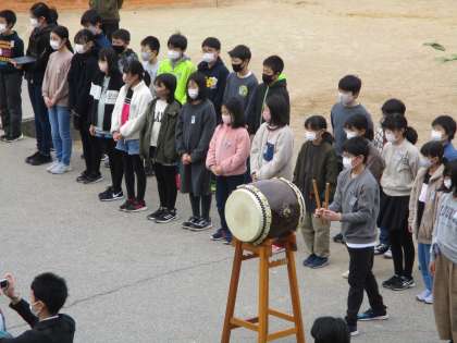 5年生の代表の子供たちが、6年生への感謝の気持ちを込め、大きな声でエールを送りました。堂々とした姿が、頼もしく感じられました。