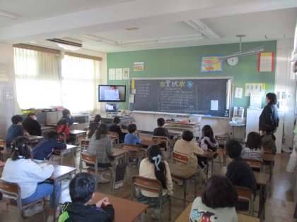 国語科で作成した自己紹介動画と、担任が撮影した写真(スライドショー)を見ながら、2年生での思い出や自身の成長を振り返った子供たちでした。