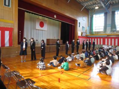 着任式と始業式の様子です。子供たちは進級してがんばろうという気持ちでいっぱいでした。