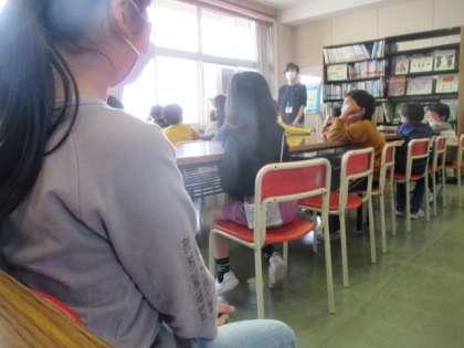 図書室の使い方を確かめました。本に番号が付いていたり、作者の名前順に並んでいたりしていることが分かりました。