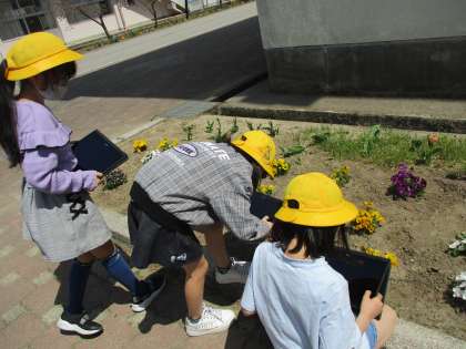 理科の学習が始まりました。学校の周りの生き物を探し、写真に記録しました。様々な形や色の生き物を見つけることができました。