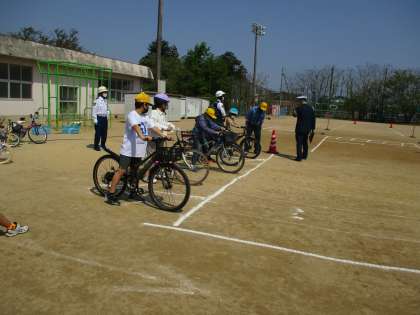 ブレーキやタイヤを確認してから自転車に乗る(ブタはしゃべるら)ことや、歩行者がいるときは、自転車から降りて通ることなど、実際に自転車に乗りながら確認しました。