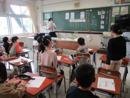 いつもとは少し異なる雰囲気の中、1組・2組の各教室では、張り切って発表をしたり、学習に真剣に取り組んだりする子供たちの姿が見られました。