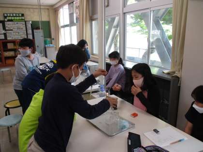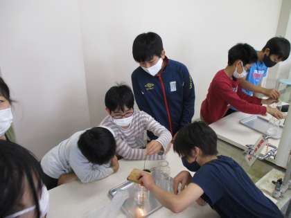 理科では、物を燃やす働きのある気体が何であるのかを調べる実験をしました。