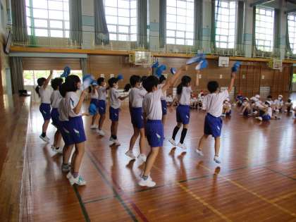 金曜日(6日)の1時間目は、5年生単独で応援練習をしました。