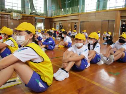 1年生から6年生までの縦割りのなかよし班で集う「団別なかよし集会」がありました。