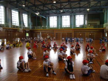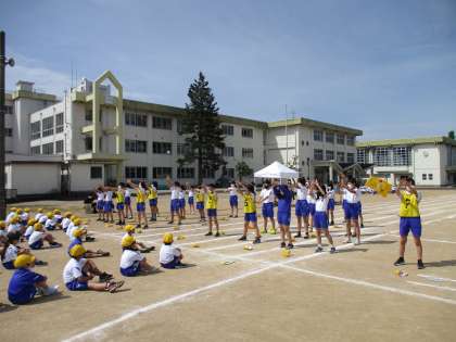 1時間目に全校で応援練習を行いました。5・6年生の応援に合わせて、どの学年も一生懸命手拍子をしたり、声を出したりしました。
