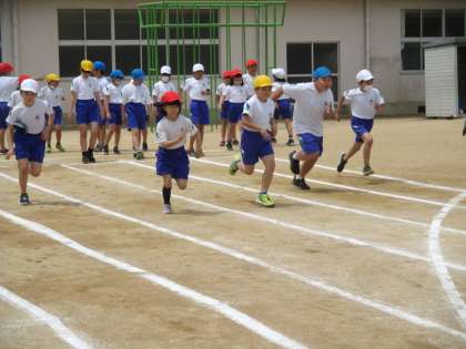 100メートルを全力で走りきることを目当てに、これまで走力&体力アップの活動に取り組んできた子供たち。