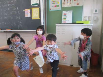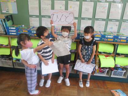 生活科の先生インタビューで分かったことをもとに、先生クイズの準備をしています。役割を分担したり、台詞に言い方を工夫したりするなど、どの班も協力して行っています。