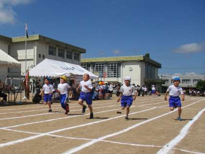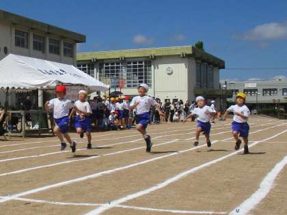 ゴールに向かって張り切って走っています。 最後まで一生懸命走ることができました。