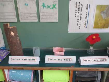 1年生は国語科で、「くちばし」という説明文の学習を行っています。問いや答えに注目して文章を読んだり、具体物を用いて登場する鳥のくちばしの真似をしたりするなど、楽しんで学習を進めています。硬い殻を割り、中から実がでてきた時、子供たちは感動していました。