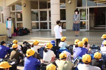 5年生宿泊学習・出発式 公開日 2022/06/25 更新日 2022/06/25 5年生 1泊2日の宿泊学習の始まりです。 代表の子供が、宿泊学習の目当てや楽しみにしていること、頑張りたいことなどを校長先生にお話しました。