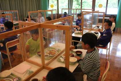 感染症対策がしっかり取られた食堂で、給食の時と同じように静かにいただきました。