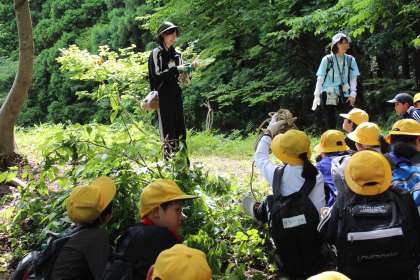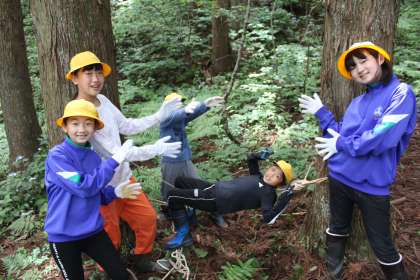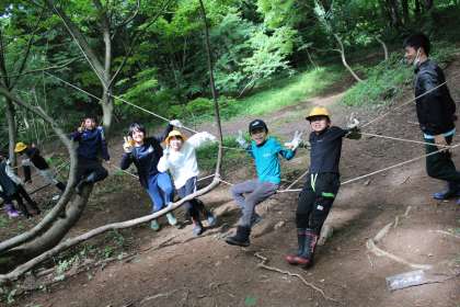 所の方から、縄の扱い方について説明を聞いた後、班ごとに自分たちの活動場所を決め、ブランコを作ったり、ハンモックを作ったりして楽しく活動しました。