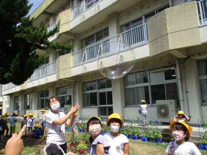 大きなシャボン玉や一度にたくさんのシャボン玉ができました。