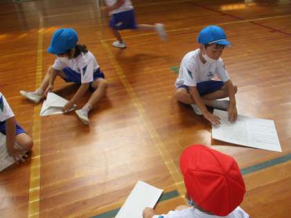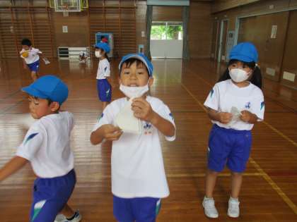 体育の学習で、紙鉄砲をつくり、ならしました。腕の振り方で音がなったりならなかったりします。思いっきり腕を振り下ろしてなることを楽しみました。