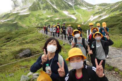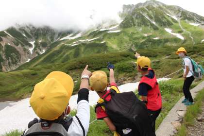 子供たちは、総合的な学習で「立山」について調べたことを、実際に目で見て確認していました。また、動植物に興味をもつ子供が多く、「ライチョウに会えないかな」とわくわくしなら散策する姿が見られました。