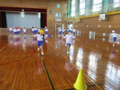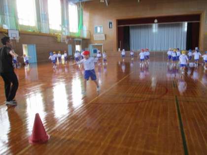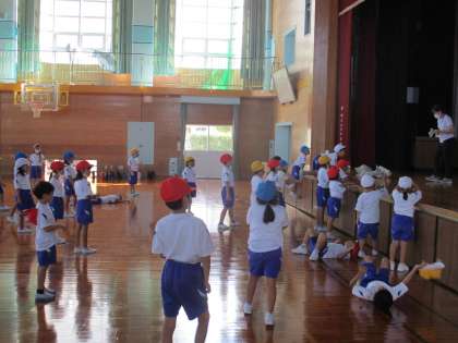 体育科では「表現遊び」の単元を行っています。ボールや新聞紙の真似をして体を動かしたり、ロボットや動物になりきって思い思いに運動したりと、楽しんで取り組んでいます。