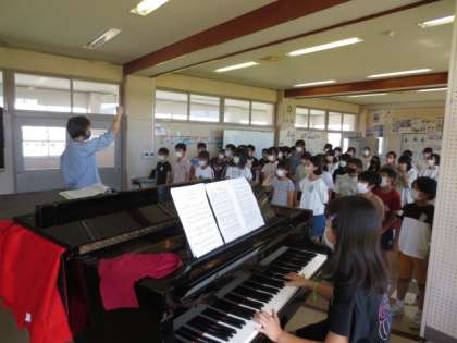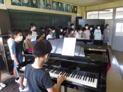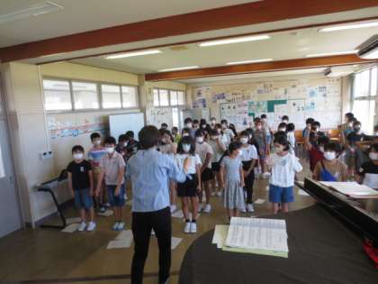 5年生は、伴奏に合わせて2部合唱を最後まで通して歌うことができました。リズムや音程に気を付けて、沖縄への思いを込めた歌声になるように練習をしていきます。