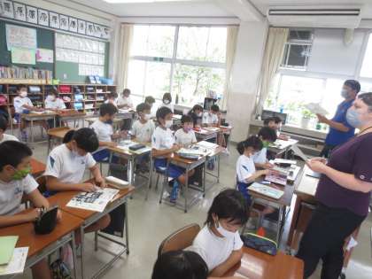 2学期の外国語活動がスタートしました。久しぶりにALTの先生とも再会でき、子供たちもうれしそうです。