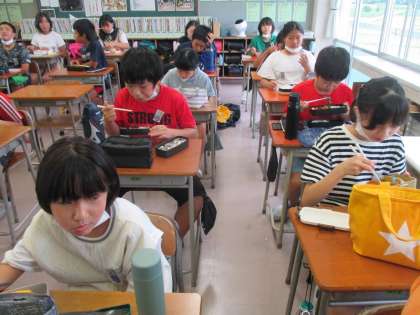 今日、予定されていたチャレンジ陸上記録会が来週に延期になったため、教室でお弁当を食べました。弁当の持参にご協力いただき、ありがとうございました。