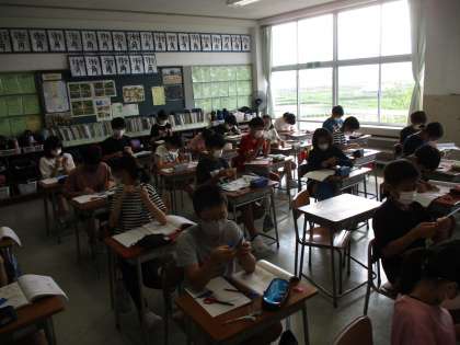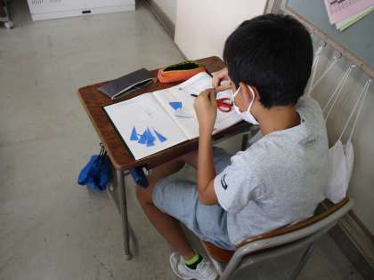 円の面積について学習しています。円の面積の公式が成り立つ理由を、実際に円を使って理解することができました。