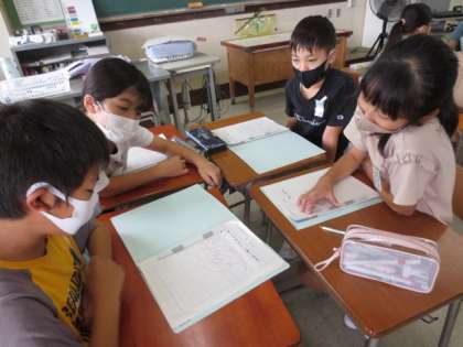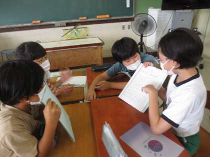 総合では、音楽会に向けて「島海の宝」を見つけています。本やパソコンで調べたことをグループで発表しました。