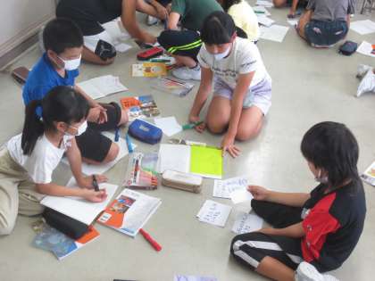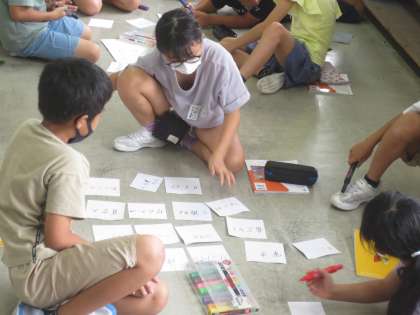 今回は、子供たちそれぞれの家での地震に対する取組について、グループでカードに記しながら話し合いをしました。