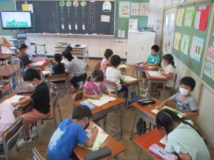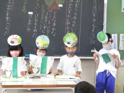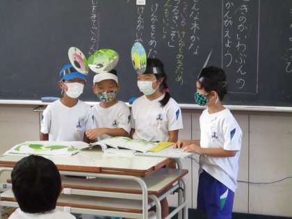 国語科では、「やくそく」という物語の音読劇を行ったり、音読劇に向けて役割決めをしたりしています。