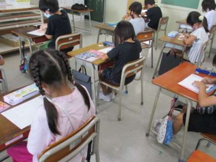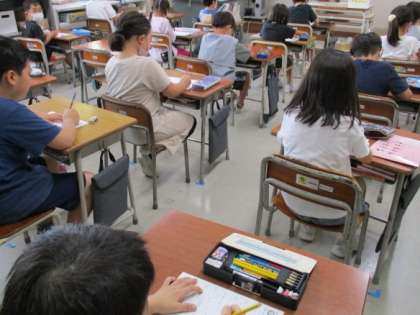 画数の多い漢字が増えてきました。はねやはらい等細かいところに気を付けて、丁寧に書いています。姿勢にも気を付けています。