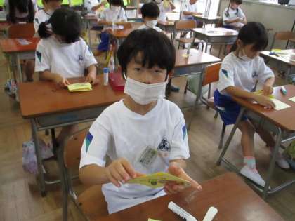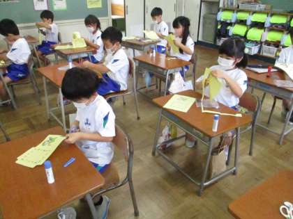 今週行われる就学時健康診断に向けて、あさがおのたねのプレゼントづくりをしました。