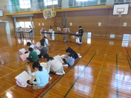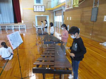 鍵盤ハーモニカや木琴、鉄琴、打楽器隊の様子です。