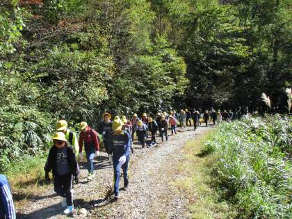 6年生宿泊学習、1日目の来拝山登山の様子です。