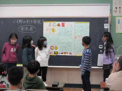 総合的な学習の時間に熊野地区の「すてき」を調べ、調べてまとめたことを紹介する発表会を行いました。