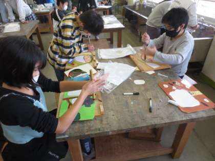電動糸鋸を使って板を切り、着色後、ニスを塗って、自分オリジナルの伝言板を仕上げました。思い通りに仕上がった作品を見て、とても満足そうでした。
