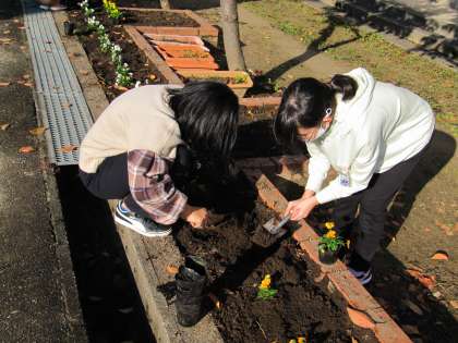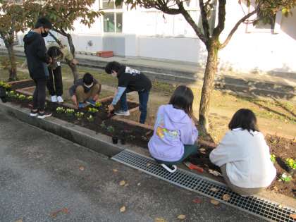 11月9日(水)、6年生は体育館前の花壇に苗植えを行いました。春、素敵な花で学校が彩られるのが楽しみです。
