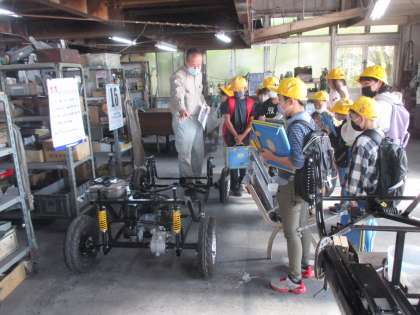タケオカ自動車工芸に見学に行きました。ミニカーがどのような車なのかを教えていただいたり、ミニカーを作っている様子を見学したりしました。お客さんに喜んでもらうために、ミニカーを開発したり、一つ一つ丁寧に手作りで作ったりしていることを知り、子供たちはとても驚いていました。見学を通して、すてきをたくさん見つけることができました。