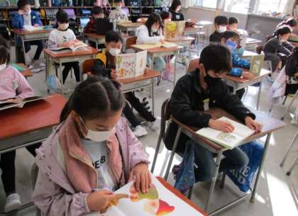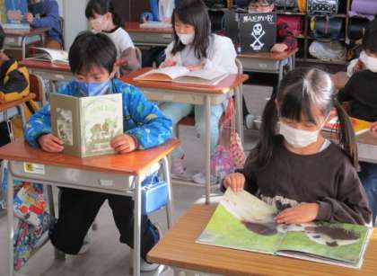 朝の清掃の後、手洗いなどをすませ、すぐに読書をしています。静かにすごす落ち着いた時間です。